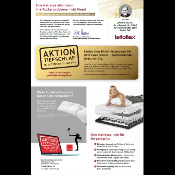 „Unser Ziel ist es : Ihnen den besten Schlaf Ihres Lebens zu schenken. Das nennen wir die „Lattoflex Garantie“! Aber nur vom 18.12.2025 bis zum 31.01.2026!“