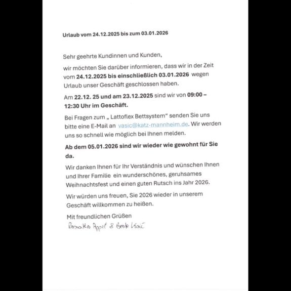 „Urlaub vom 24.12.25 – 03.01.2026“